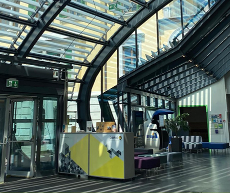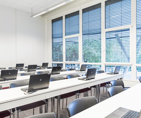 La CAMPUS 02, modernitatea intalneste istoria. In timp ce villa in care isi are sediul ar putea povesti istorii din timpuri demult apuse, anexa noua a cladirii reflecta progresul tehnologic si reprezinta un accent arhitectural deosebit. Spatiile de studiu si de recreere confortabile, echipamentul tehnic de ultima generatie si biblioteca bogata in literatura de specialitate creeaza un mediu perfect pentru studii si activitati extracurriculare.