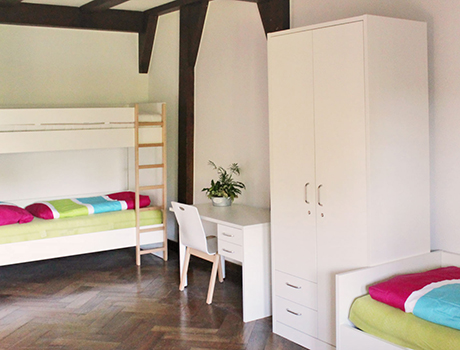 Студенты размещаются в общежитии, обустроенном в историческом замке, в двух, трех и четырехместных комнатах с удобствами на этаже.