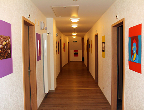 Дети проживают в резиденции, в стандартных двухместных номерах с полным набором необходимых удобств: кровать, стол, стулья, шкафы для одежды и вещей. Душ, туалет на этаже.