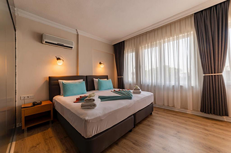 Номера: 3-х местные с удобствами в каждом номере (душ, туалет), оборудованы кондиционерами, шкафчиками для одежды, прикроватными тумбочками, ТВ со спутниковыми каналами, балкон.